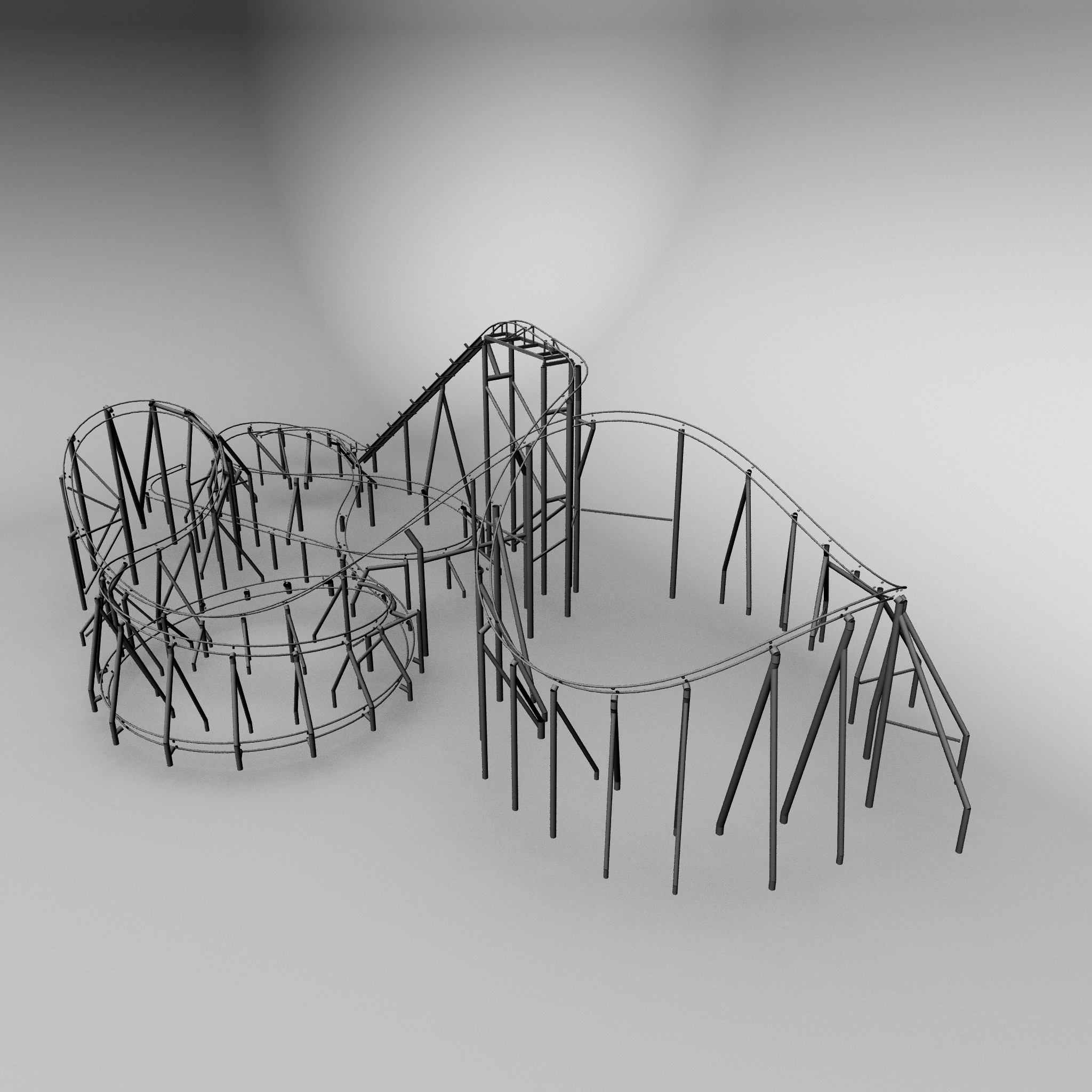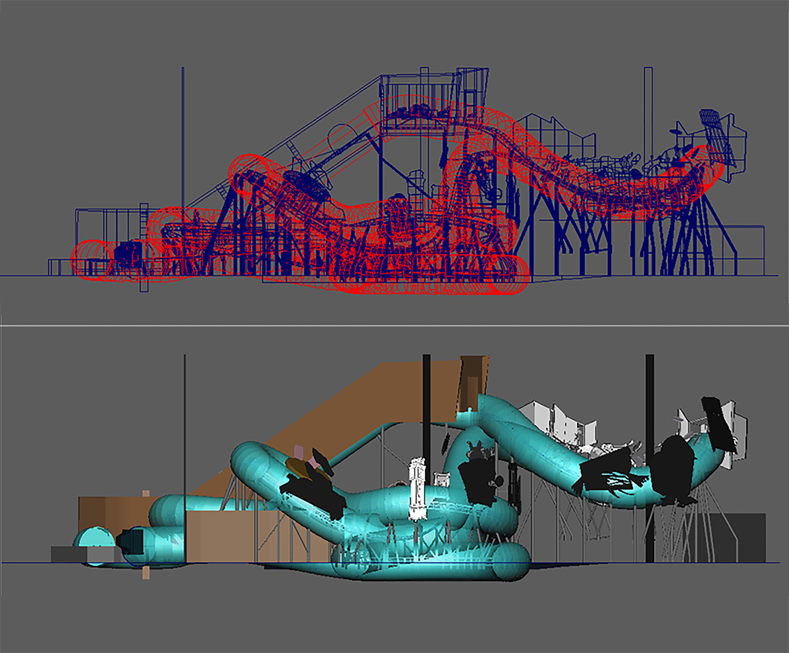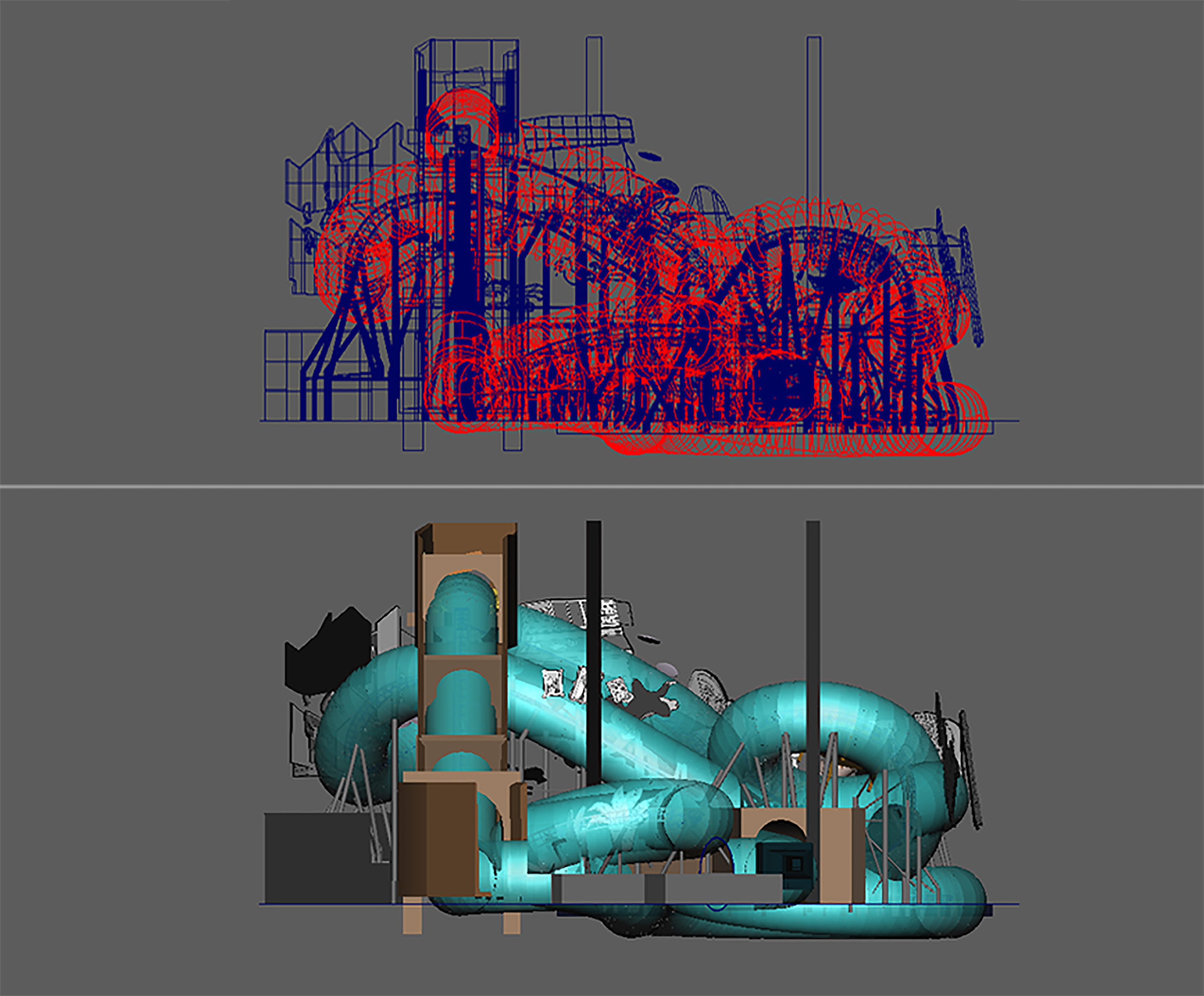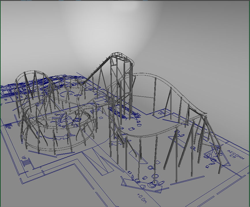 We created the 3D model for the ride, to take into the “No Limits” software, to create ride simulations to better help us understand the space and the ride flow.