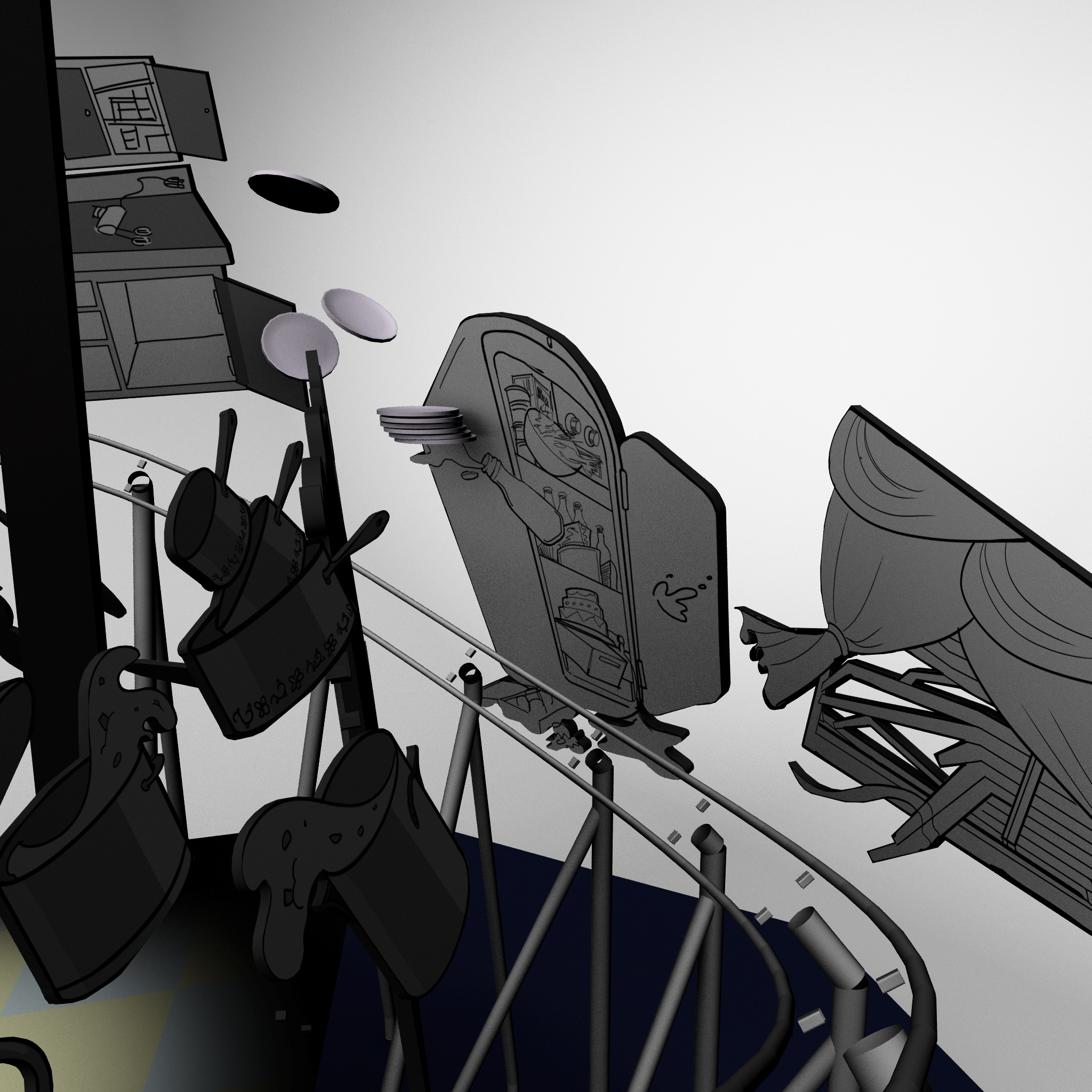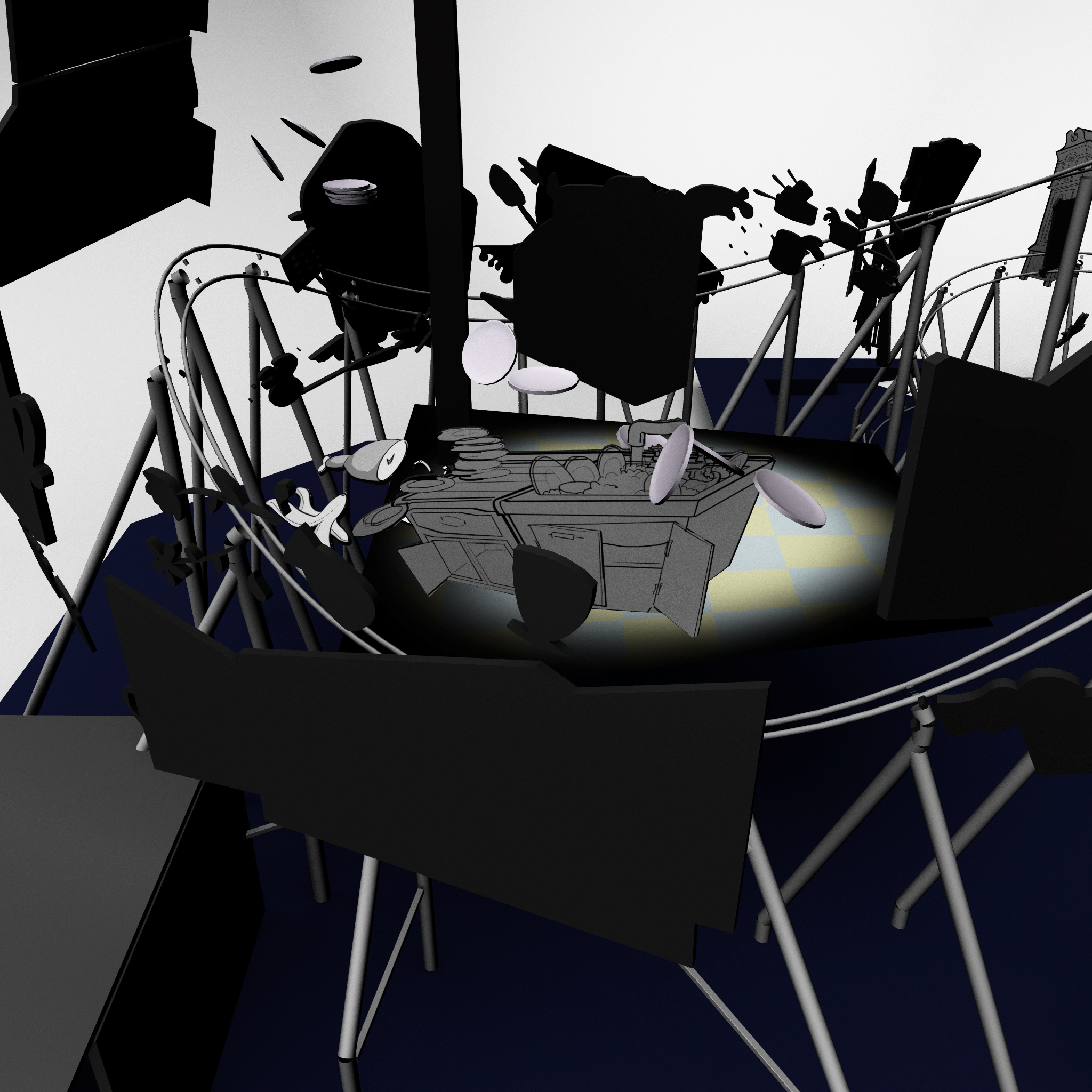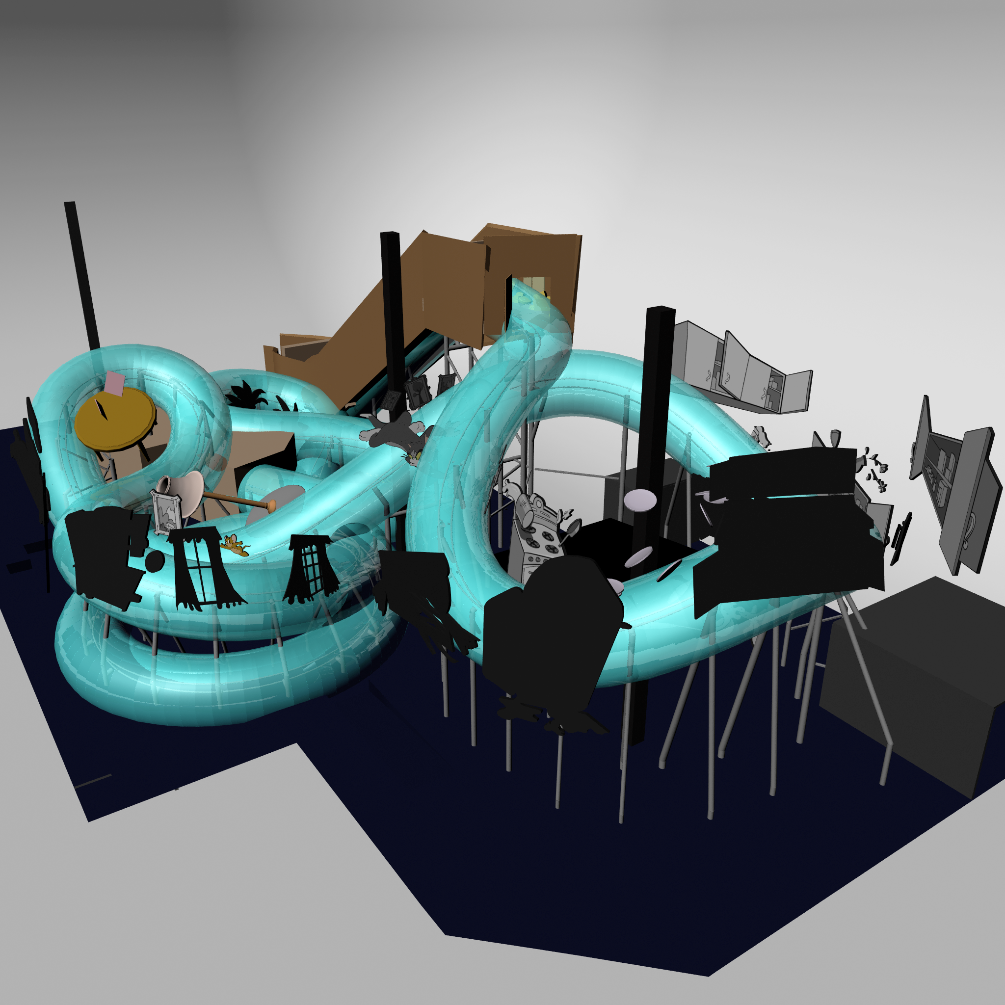 While at Thinkwell, I was a part of the team responsible for creating and developing designs for the Cartoon Junction. We worked on the Tom and Jerry attraction, which is an indoor roller coaster. I worked with the technical department over the Reach Envelope study, and object/prop placement.
